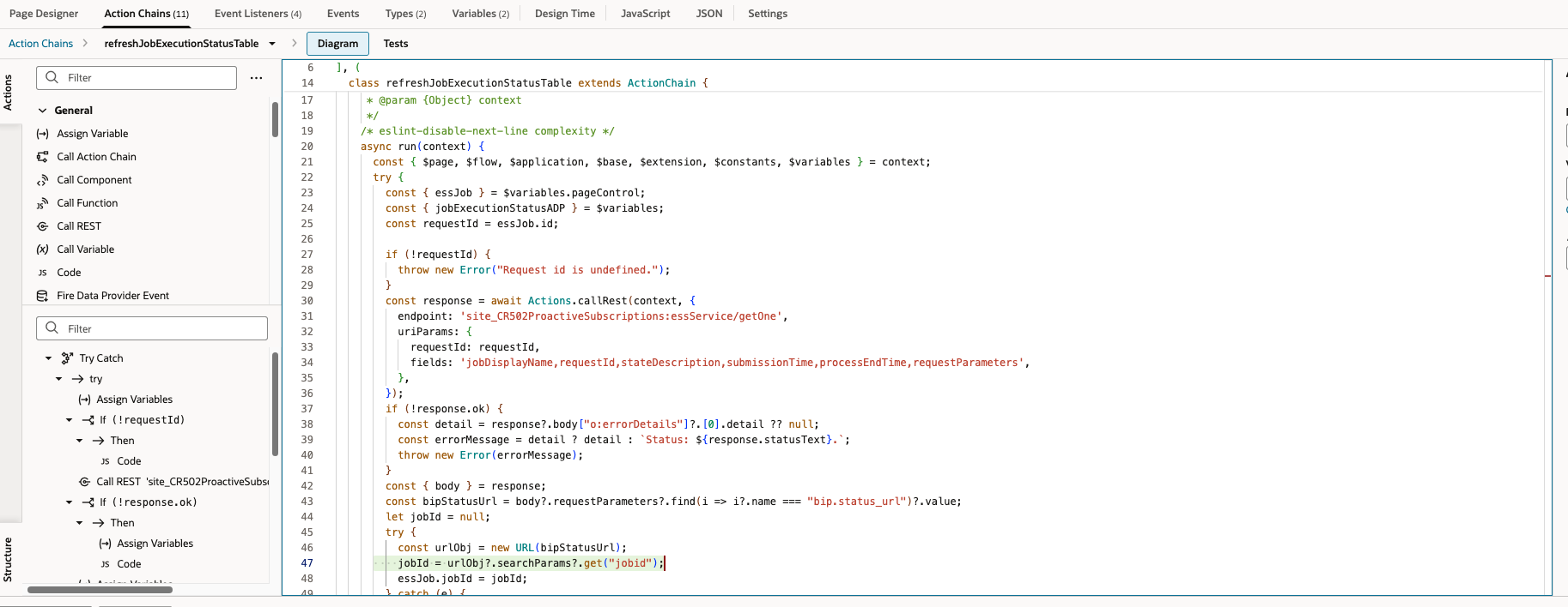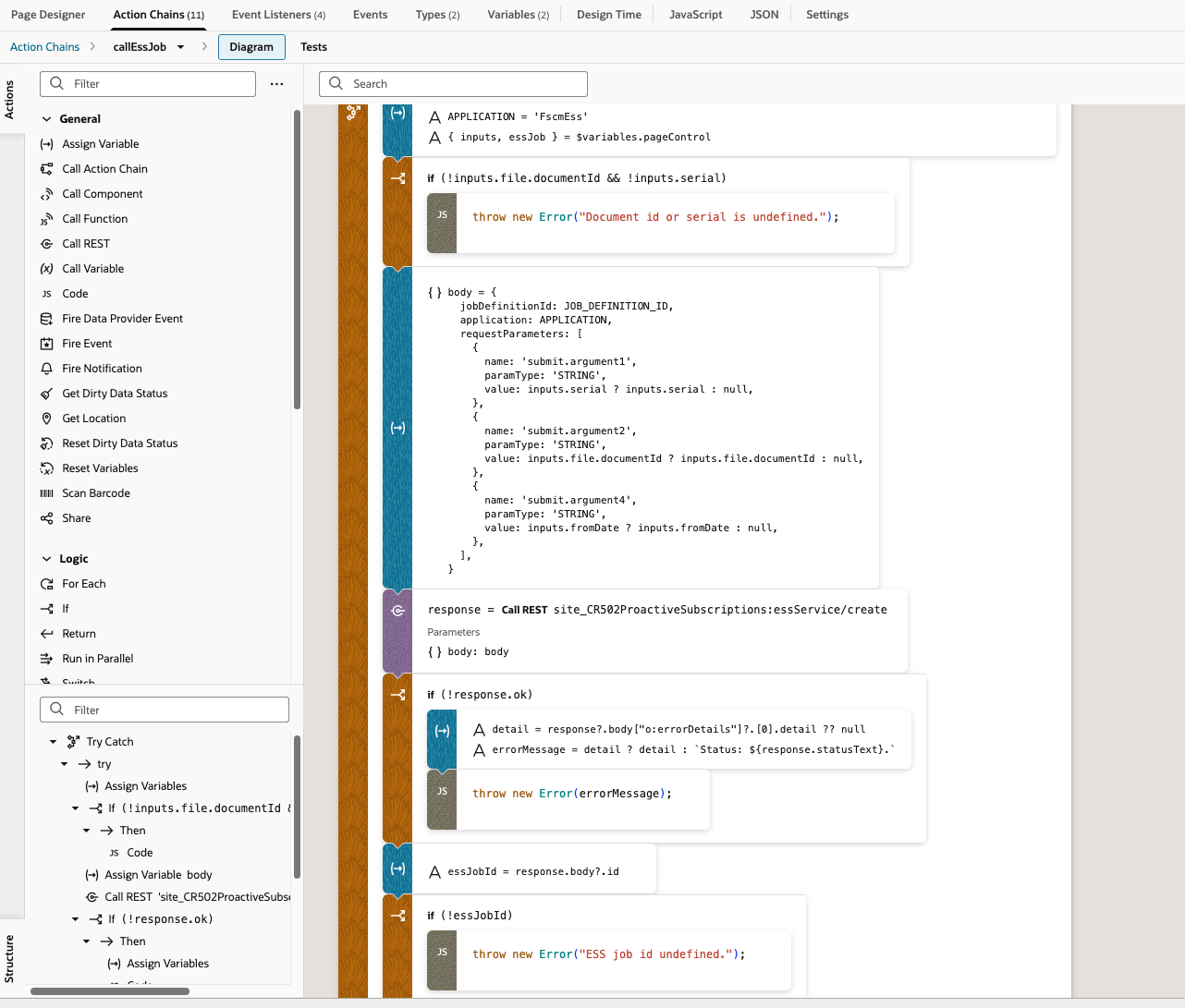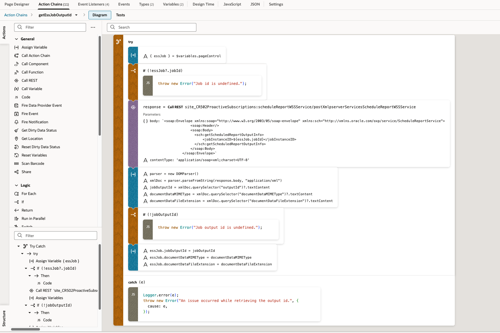 - Use /rest/scheduler/v1/requests to fetch the BIP job ID for the completed ESS.