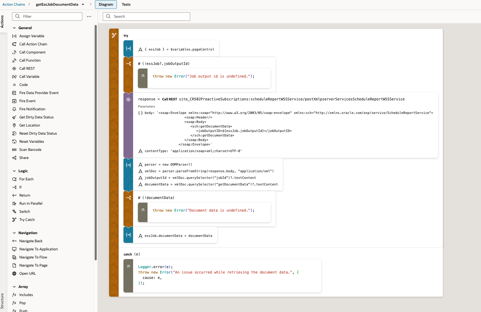 We implemented a solution in a new AppUI within Visual Builder Studio, utilizing the following approach: